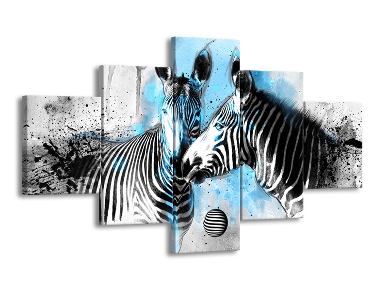 Glasschilderij Zebra, Dieren | Blauw, Zwart, Wit | 125x70cm 5Luik