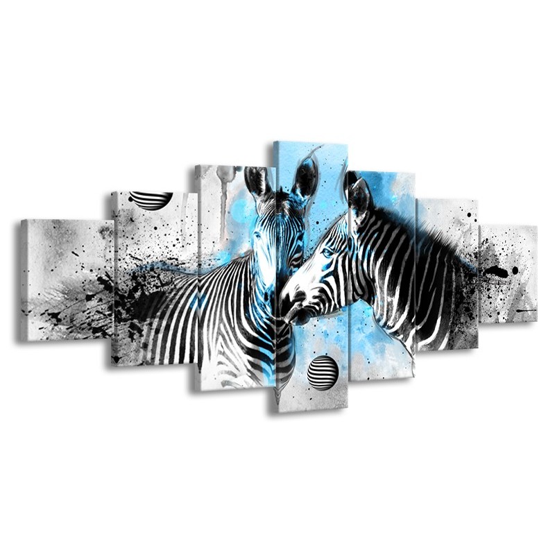 Glasschilderij Zebra, Dieren | Blauw, Zwart, Wit | 210x100cm 7Luik