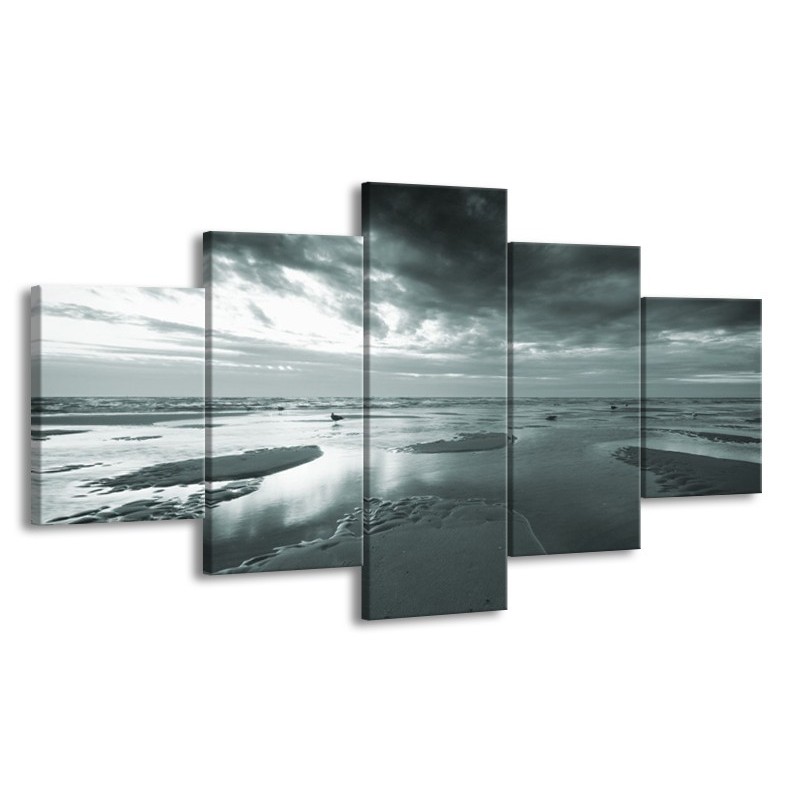 Glasschilderij Zee | Grijs, Groen | 150x80cm 5Luik