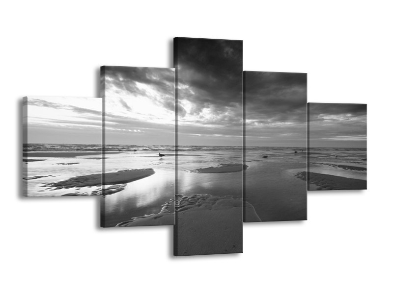 Glasschilderij Zee | Grijs, Zwart, Wit | 125x70cm 5Luik