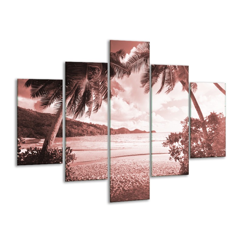 Glasschilderij Zee, Strand | Bruin, Rood | 100x70cm 5Luik