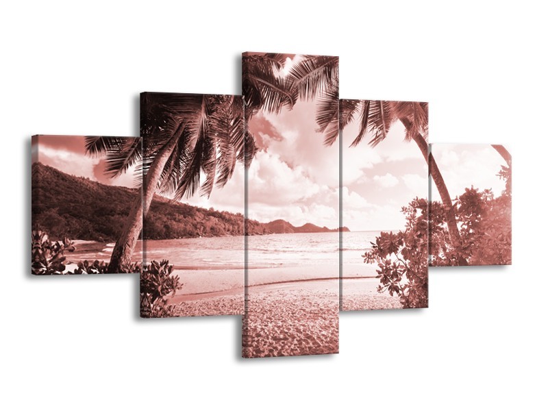 Glasschilderij Zee, Strand | Bruin, Rood | 125x70cm 5Luik
