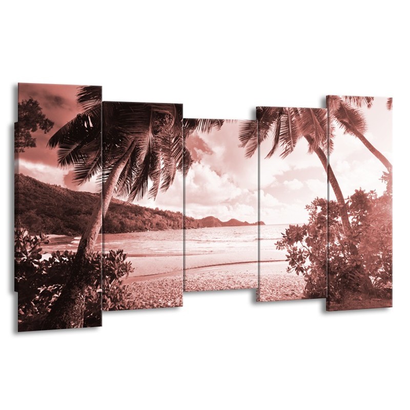 Glasschilderij Zee, Strand | Bruin, Rood | 150x80cm 5Luik