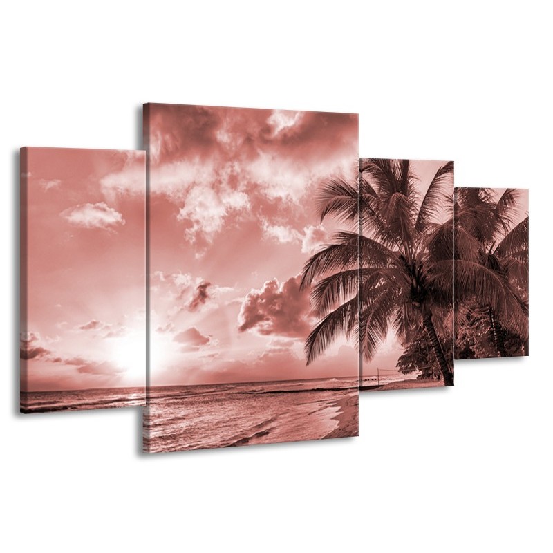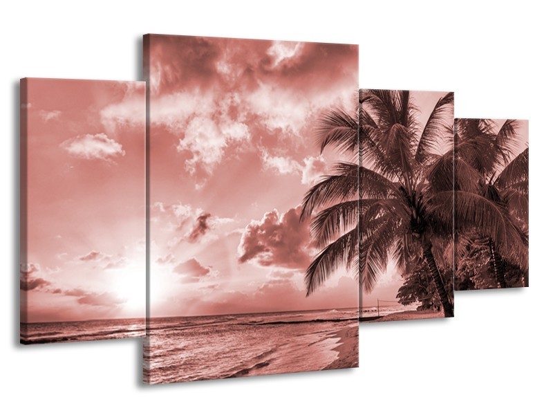 Glasschilderij Zee, Strand | Bruin, Rood | 160x90cm 4Luik