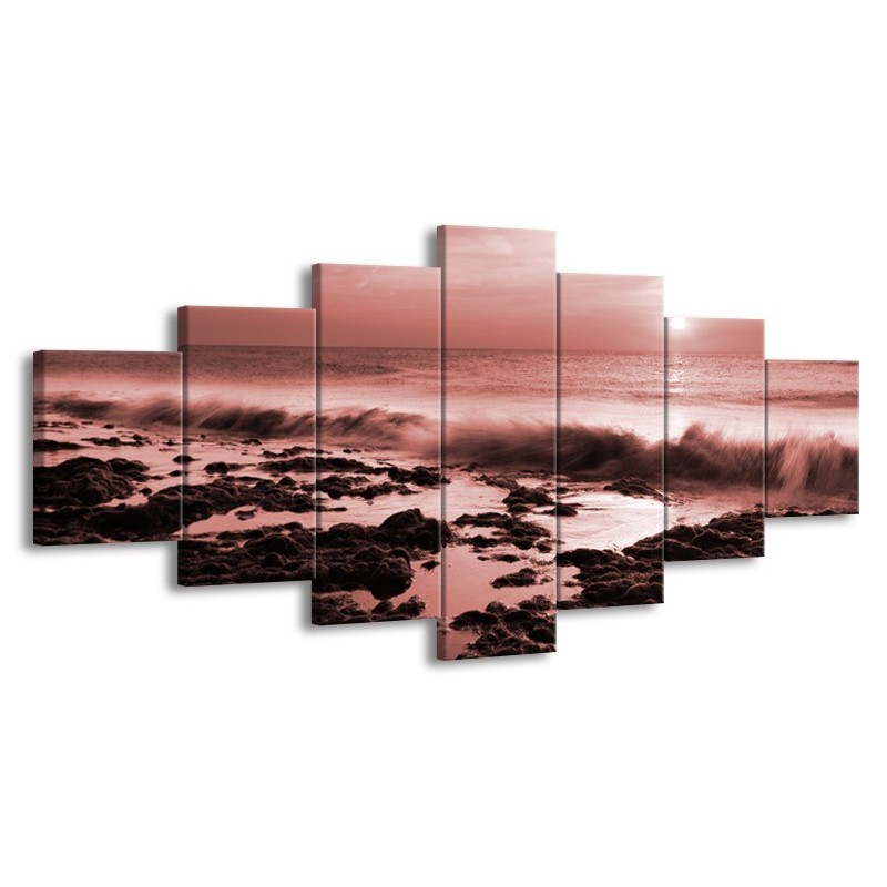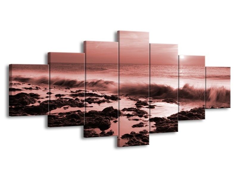 Glasschilderij Zee, Strand | Bruin, Rood | 210x100cm 7Luik
