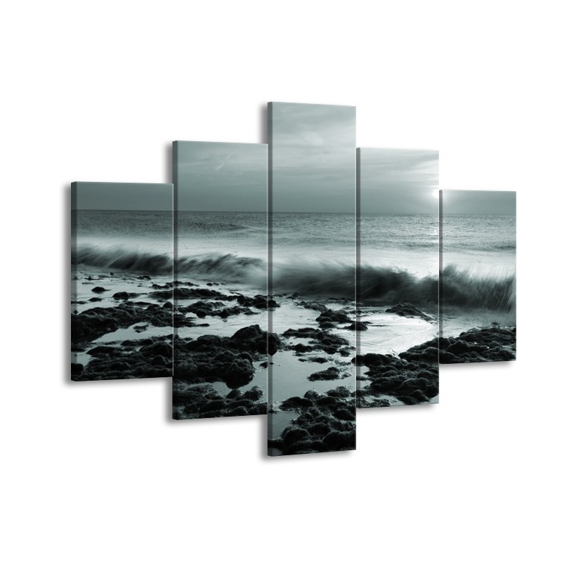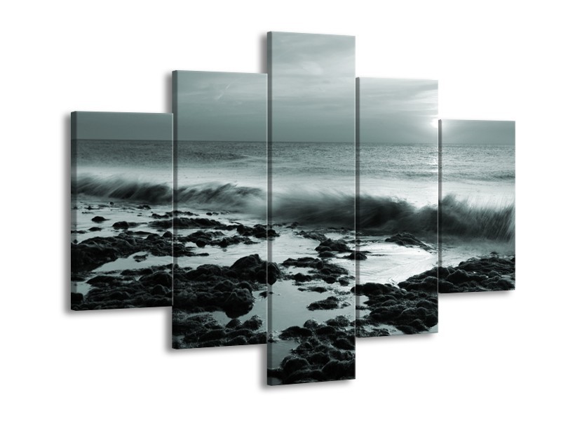 Glasschilderij Zee, Strand | Grijs, Groen | 150x105cm 5Luik