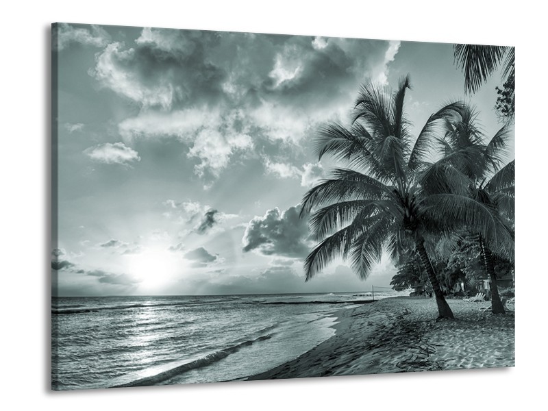 Glasschilderij Zee, Strand | Grijs, Zwart, Groen | 100x70cm 1Luik