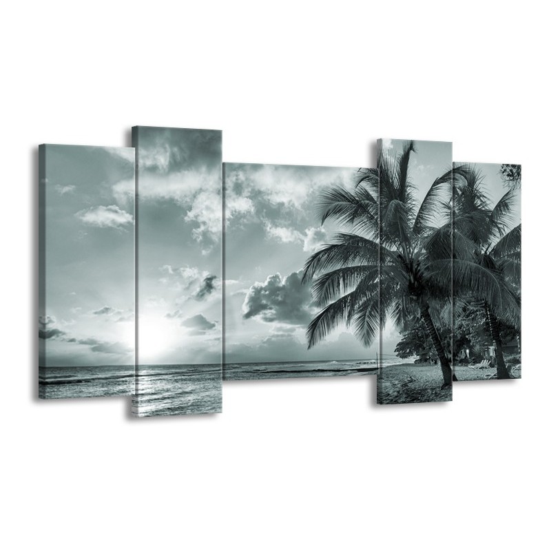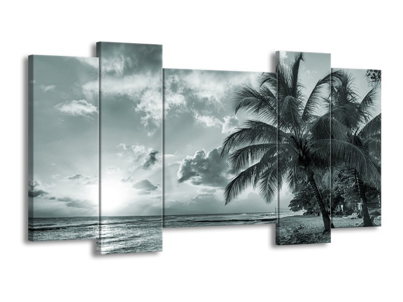 Glasschilderij Zee, Strand | Grijs, Zwart, Groen | 120x65cm 5Luik