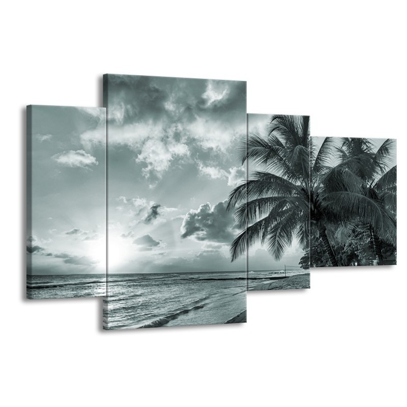 Glasschilderij Zee, Strand | Grijs, Zwart, Groen | 120x75cm 4Luik