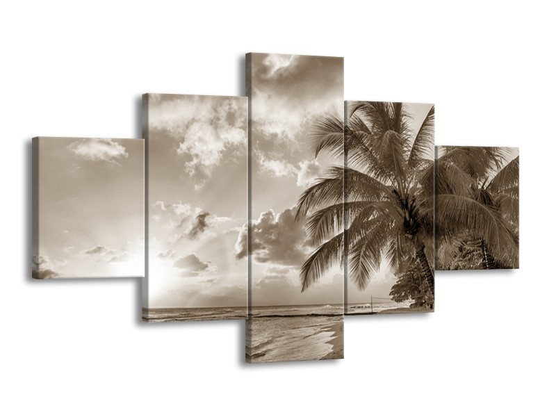 Glasschilderij Zee, Strand | Sepia | 125x70cm 5Luik