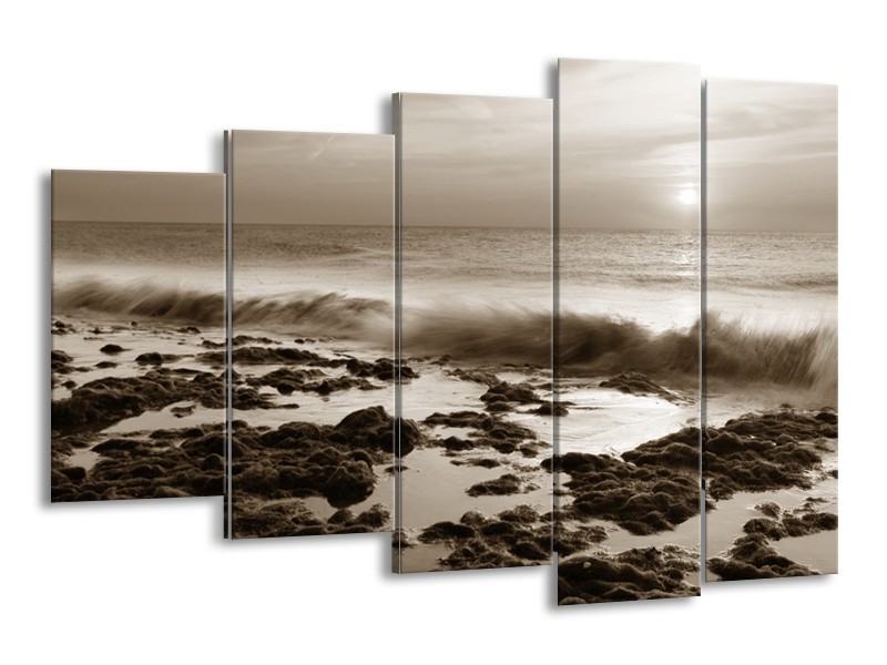 Glasschilderij Zee, Strand | Sepia | 150x100cm 5Luik