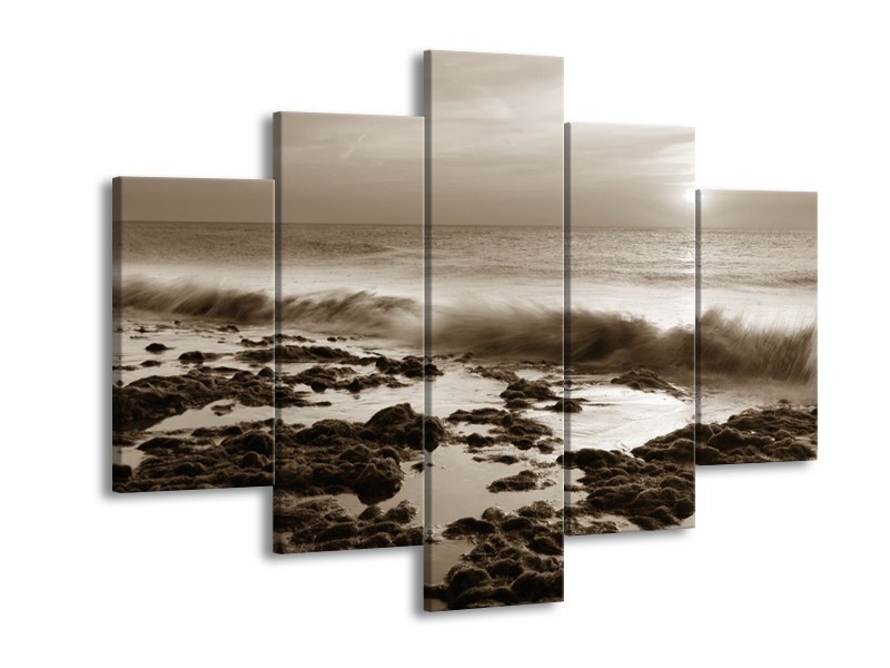 Glasschilderij Zee, Strand | Sepia | 150x105cm 5Luik
