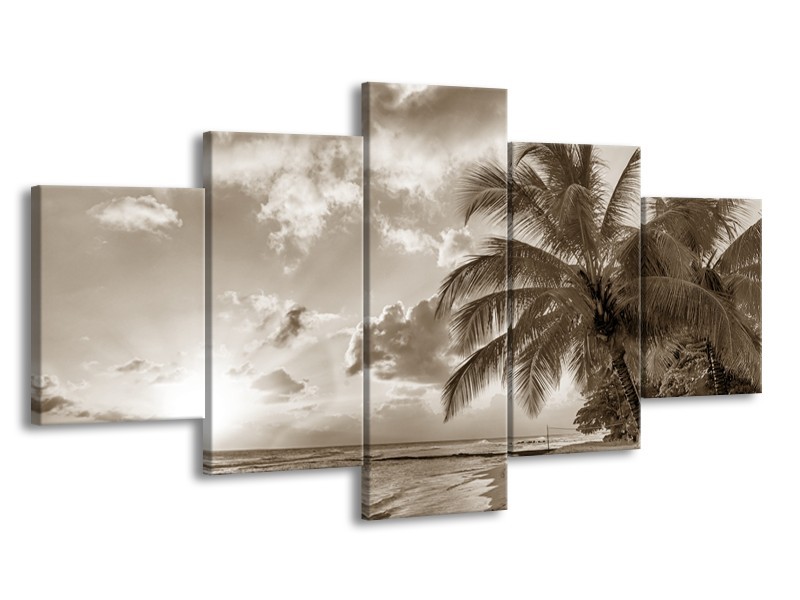 Glasschilderij Zee, Strand | Sepia | 150x80cm 5Luik