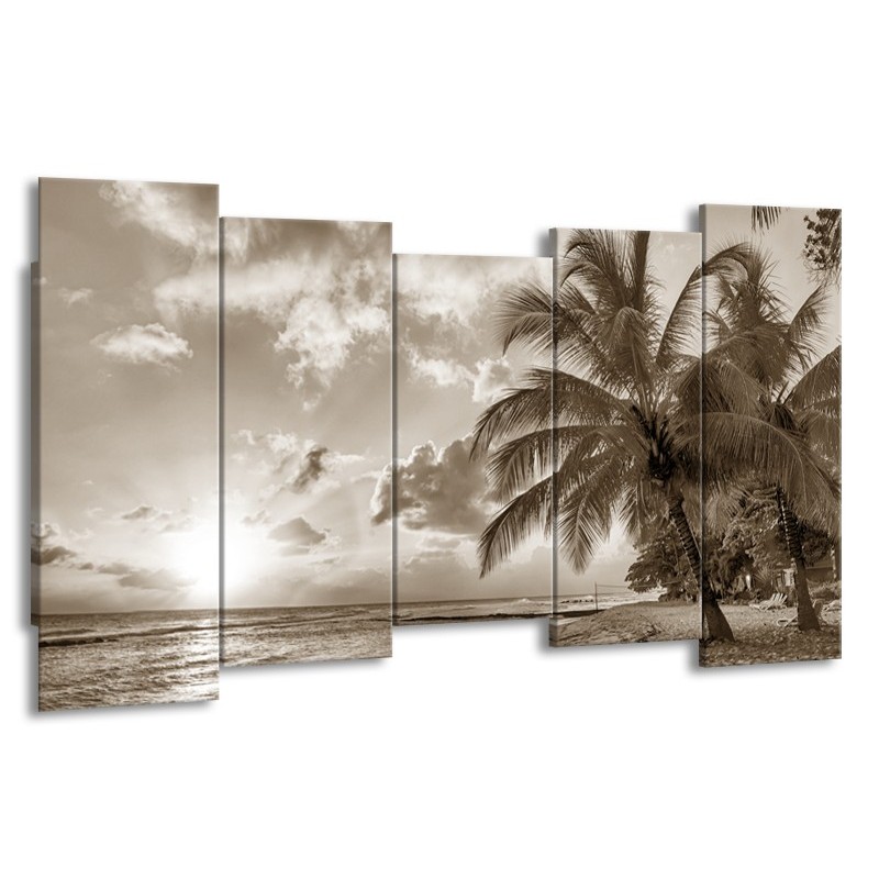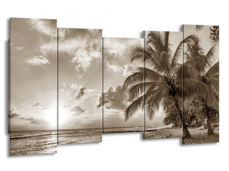 Glasschilderij Zee, Strand | Sepia | 150x80cm 5Luik