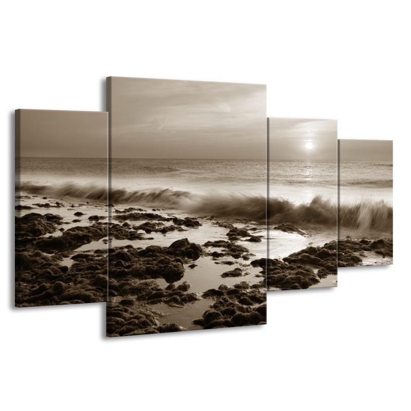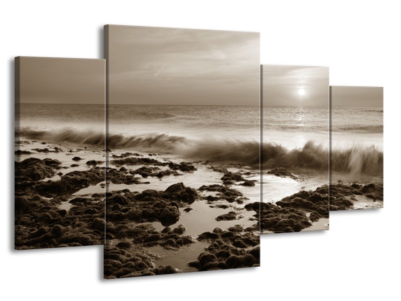 Glasschilderij Zee, Strand | Sepia | 160x90cm 4Luik