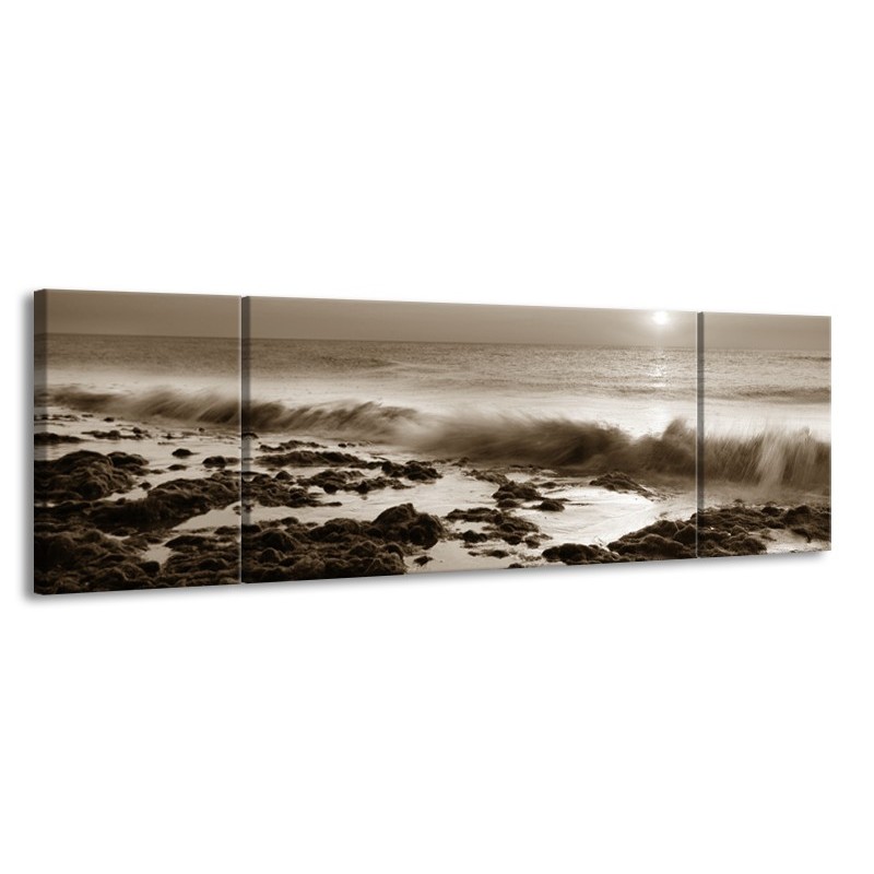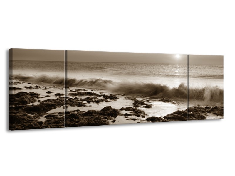 Glasschilderij Zee, Strand | Sepia | 170x50cm 3Luik