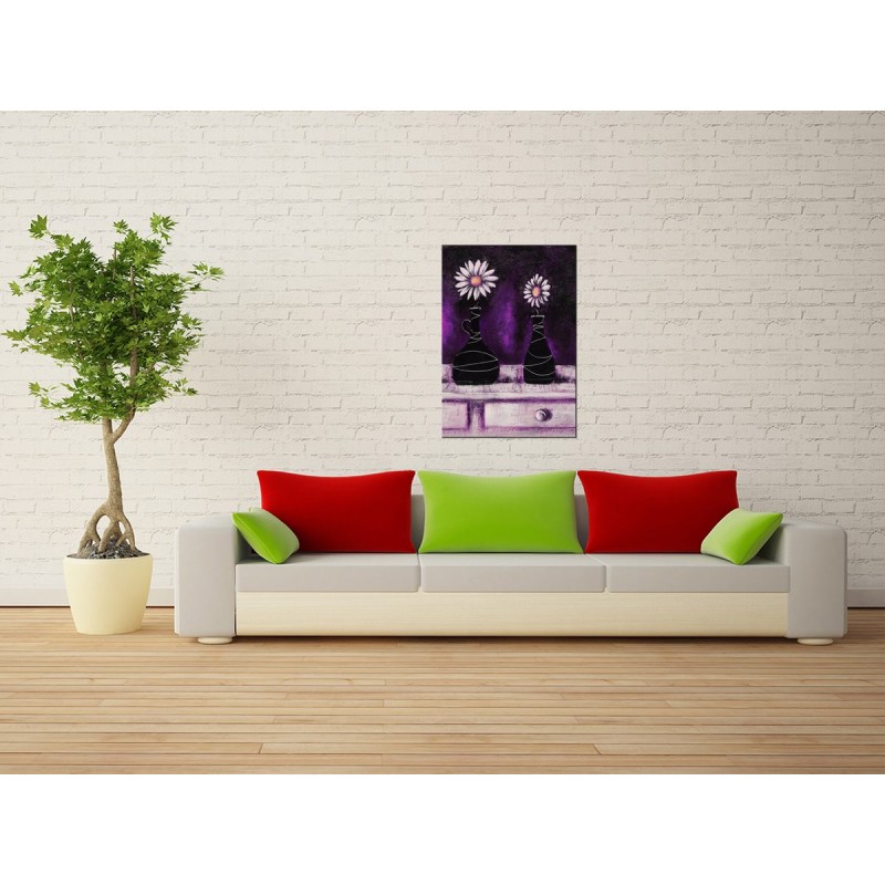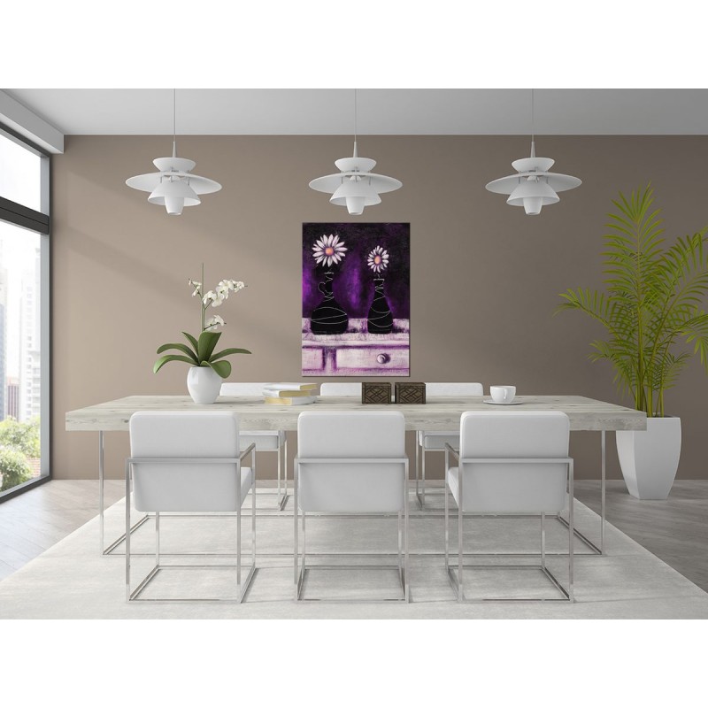Schilderij handgeschilderd Madeliefje | Paars , Zwart | 70x120cm 1Luik