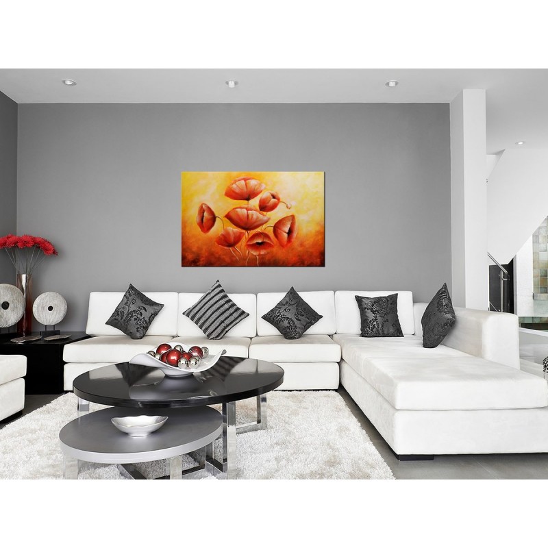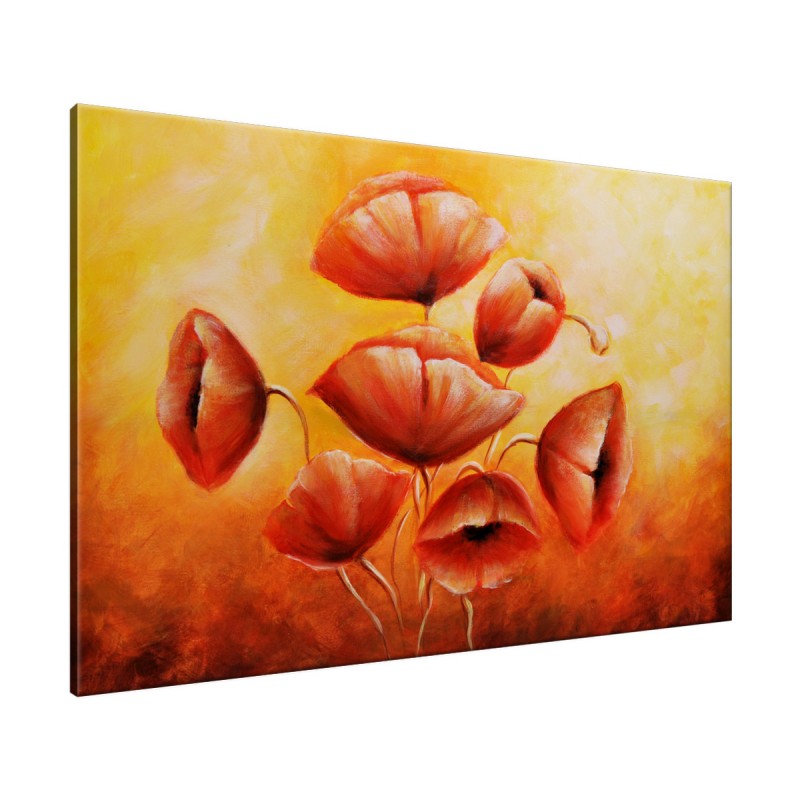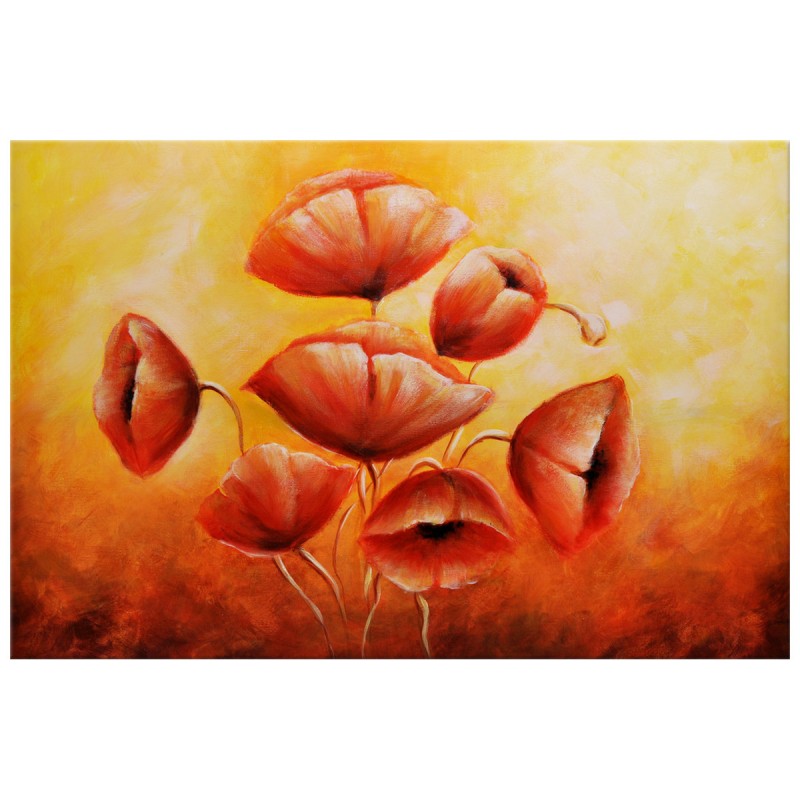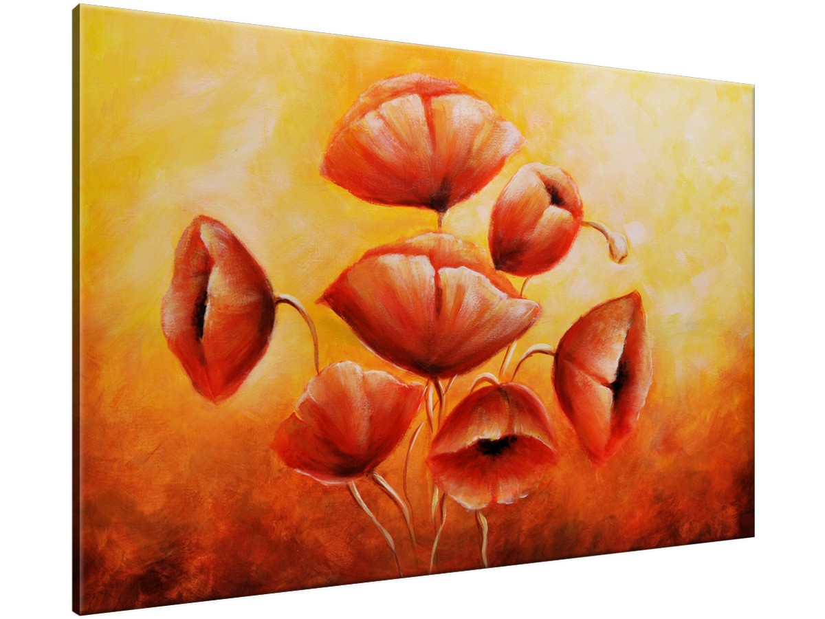 Schilderij handgeschilderd Klaproos | Oranje, Rood | 120x70cm 1Luik