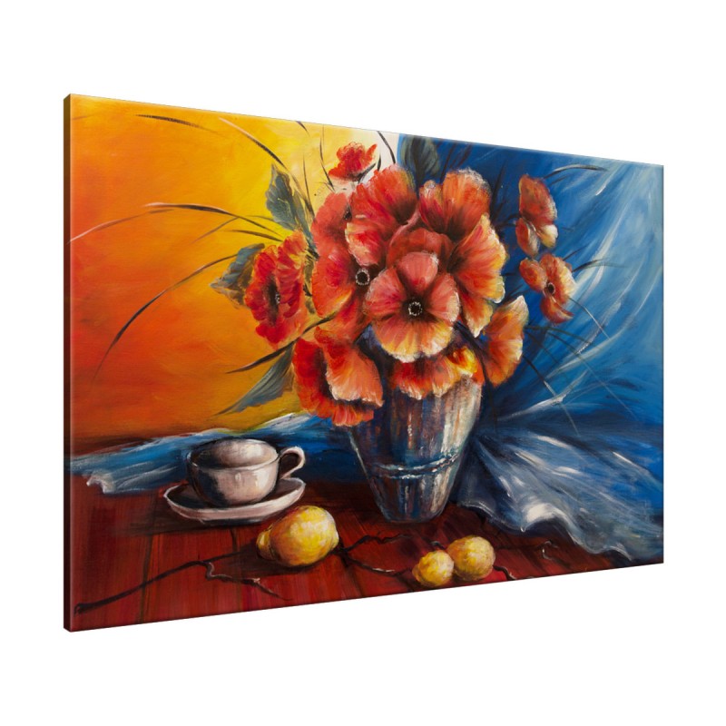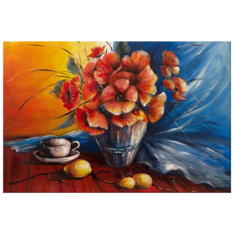 Schilderij handgeschilderd Klaproos | Rood , Blauw , Oranje | 120x70cm 1Luik